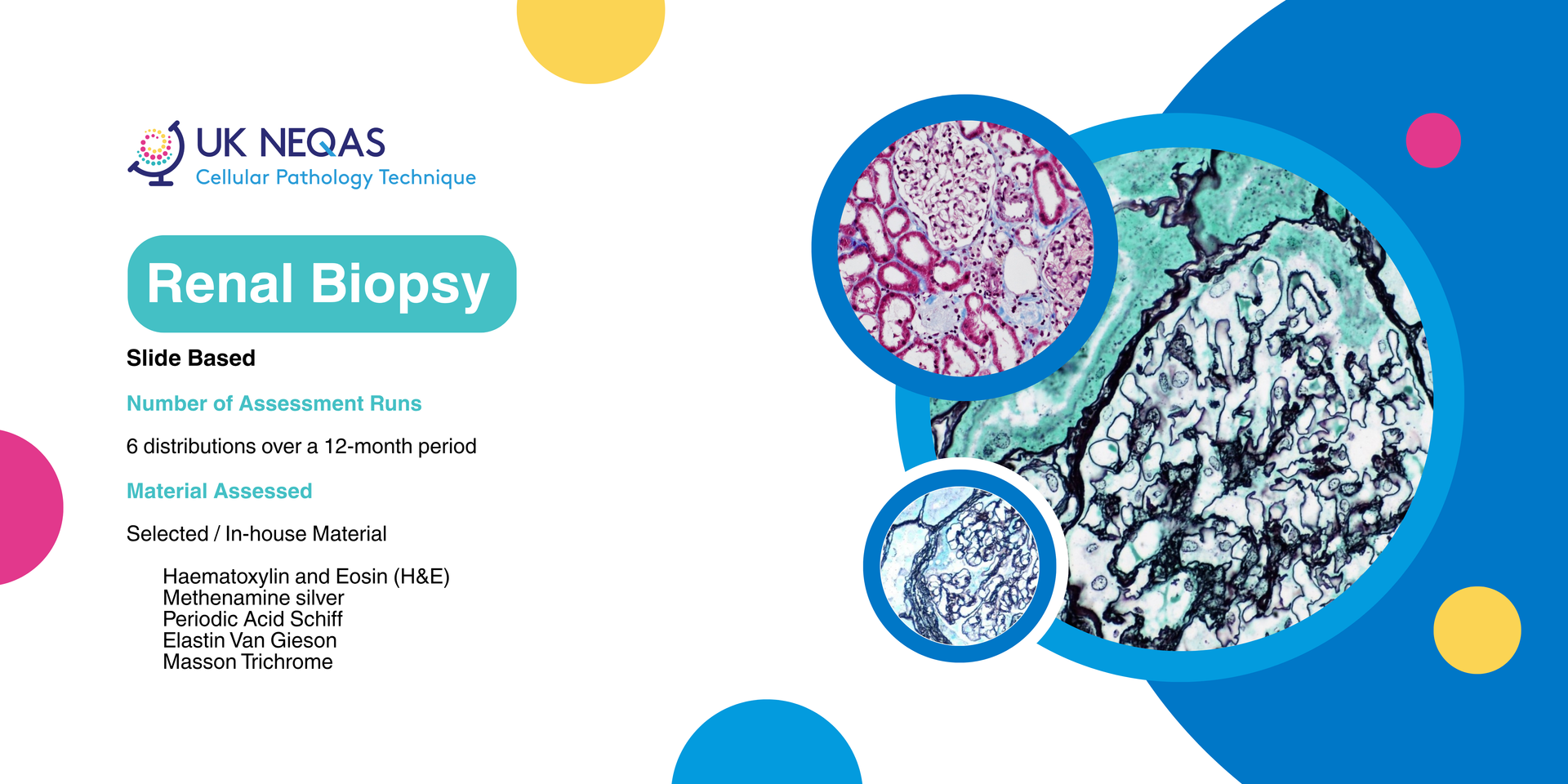 Participants are asked to submit diagnostic slides from a suitable native renal biopsy, which has been recently processed in the laboratory organisation. Participants must not cut / recut slides specifically for EQA submission, and must be a true representation of that case, and of the quality performed as part of routine daily workload.